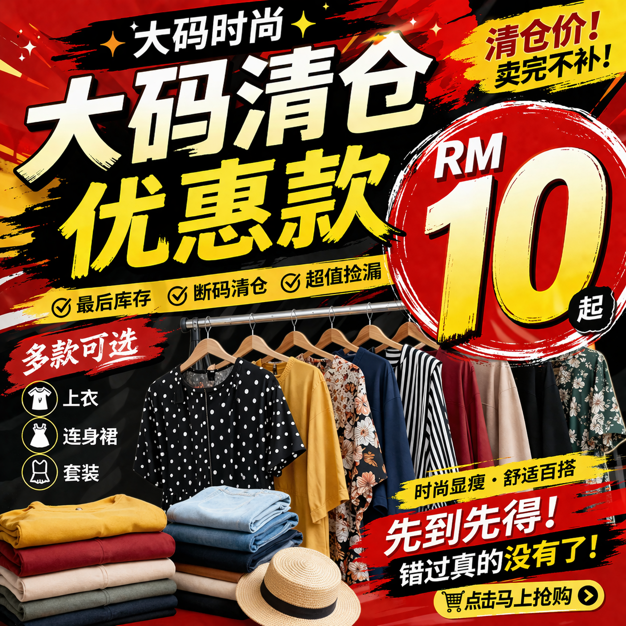 大码清仓优惠款 RM 10